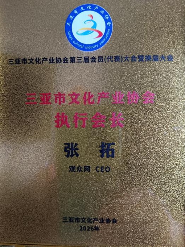 会上,观众网CEO张拓当选三亚市文化产业协会执行会长。他表示,将立足三亚自贸港政策优势与文旅资源,以协会为平台,联动全市文化企业,聚焦三亚国际文化产业博览交易会提质升级,打造集展示、交易、招商、交流于一体的国际化产业平台,吸引国内外优质文化项目落地,助力三亚建设区域性文化产业交易中心。同时推动三亚文化出海,联动海外资源讲好三亚故事;加快AI智能与文化产业深度融合,赋能数字文创、智慧文旅与内容创新;深化文旅+文化产业融合,构建“三亚文娱文旅融合生态”;大力引进明星工作室、影视公司、经纪机构、文化IP落地三亚,集聚产业资源,以此强化国际文化传播,完善文化产业链。这不仅是文旅融合的深度实践,更是助力三亚从“文旅目的地”迈向“国际文娱旅游标杆城市”的核心战略。