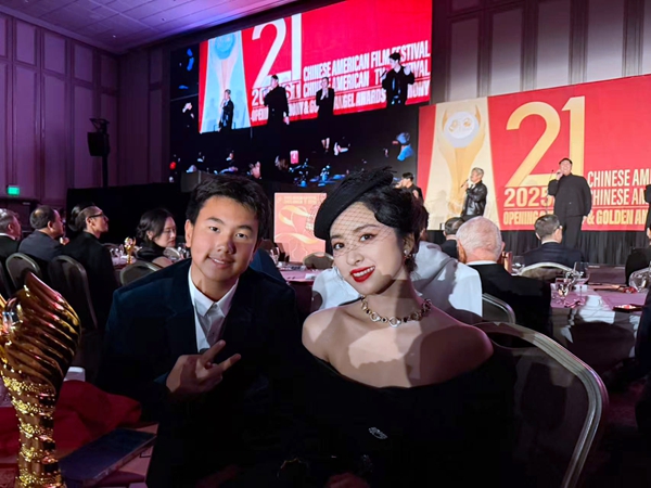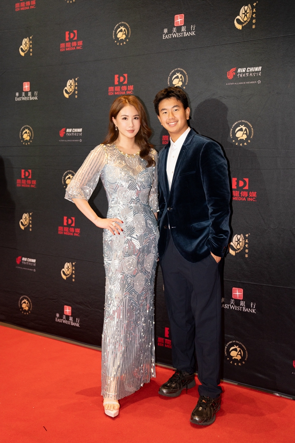 当晚,孟瑶携大儿子Dustin Zhou共同出席,以一袭银色亮片修身长裙亮相,完美勾勒出优雅身段,中长卷发慵懒垂肩,整体造型优雅大气,展现出从容自信的东方魅力。Dustin Zhou身着黑色西装,沉稳有型,目前在美国就读的他,也以自信姿态陪伴母亲见证国际影视盛事。