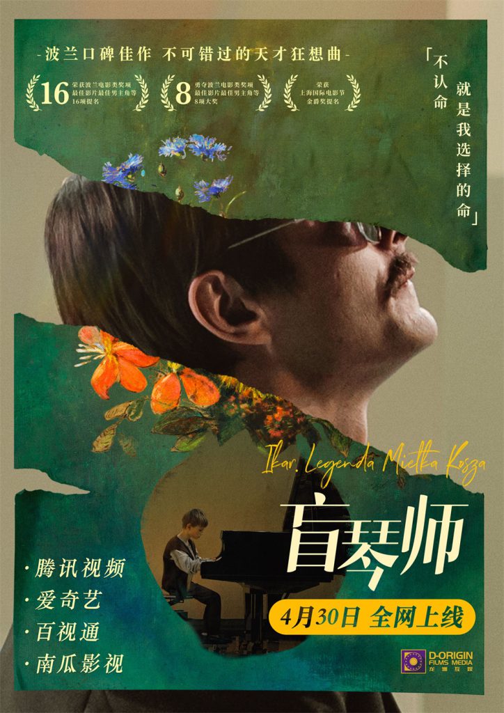 电影《盲琴师》由导演马切伊·佩普日察执导,大卫·奥格尼克领衔主演,波兰殿堂级爵士钢琴家、音乐制作人莱谢克·莫斯德担任配乐,讲述天才盲人钢琴家对抗不公命运的传奇故事。影片由龙渊互娱(北京)营销策划有限公司宣发,将于4月30日上午10点上线腾讯视频、爱奇艺、百视通、南瓜影视四大平台,一起走进米耶特用音乐创造的璀璨世界吧!