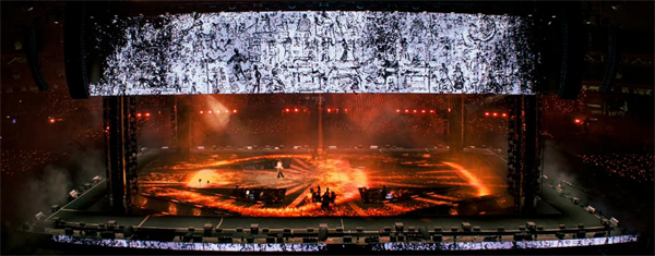 今年火星演唱会四面台国风元素贯穿始终,基于对东方美学的深切理解,将山海经、三星堆、中国传统山水画等元素与舞美设计做新融合,打造音乐与画面结合的意境沉浸,落点于恢弘的视觉呈现,如同一幅绮丽的画卷,描绘着国风的不殆风华。传统乐器也与流行曲风相互渗透,不仅是对传统乐器的继承和弘扬,也是对现代音乐的巧妙创新,打造出传统与现代交汇的音乐盛宴。启用的珠帘屏和追踪式地屏,配合歌曲表达,呈现丰富的舞美色彩层次,解锁全新视效体验,引起歌迷热烈反响,在各大平台留下了“珠帘屏现场看太震撼了”“谁想出来的珠帘屏,简直是天才”、“垂涎地屏视角了”等声音。