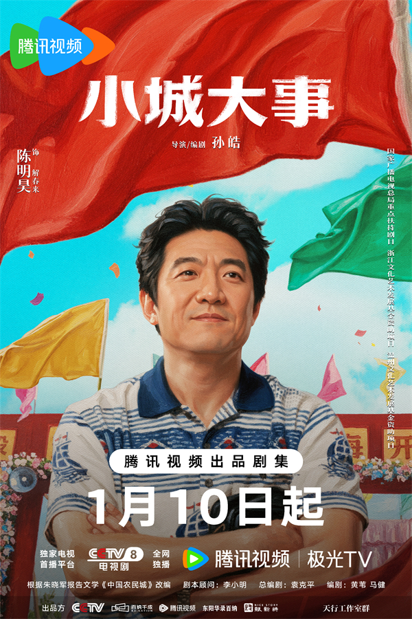 今日,由中央电视台、北京百纳千成影视股份有限公司、腾讯视频、东阳华录百纳影视有限公司、上海赋新诗影视文化有限公司、天行工作室群出品,作为国家广播电视总局重点扶持剧目、浙江文化艺术发展基金资助项目、温州文化艺术发展基金资助项目,根据朱晓军报告文学《中国农民城》改编的电视剧《小城大事》正式官宣定档,将于1月10日起登陆中央电视台电视剧频道,并在腾讯视频全网独播。