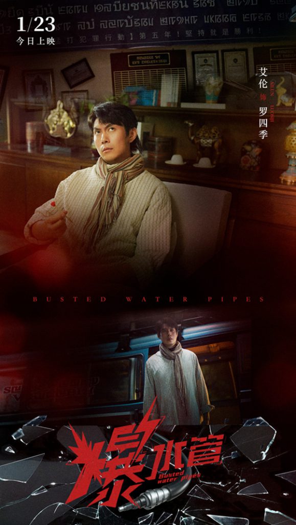 犯罪喜剧《爆水管》讲述,卷王阿sir于大海(彭于晏 饰)因小镇治安太好,竟然导致警局不保。为了保住工作,决定顶“疯”造个大案!与此同时,罗四季(艾伦 饰)作为于大海的“铁子”,本是和平镇上人人尊敬的“灵魂”导师,却被以罗浩(周游 饰)、牛大轮(闫佩伦 饰)为首的盗墓亲戚胁迫重操旧业,盯上了警局下的古墓,两伙人因“爆水管”而阴差阳错相遇,和平镇史上最大的案件一触即发。
